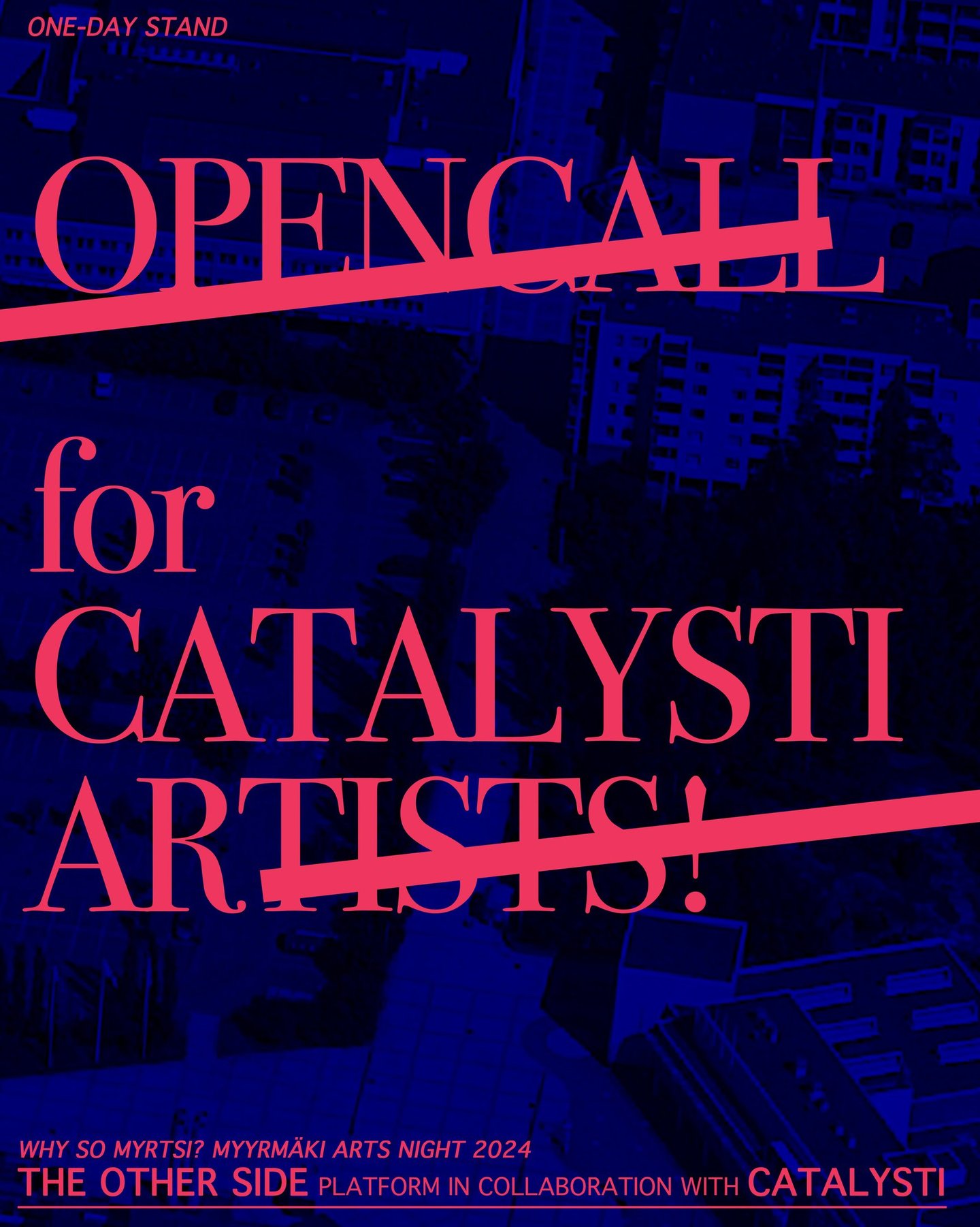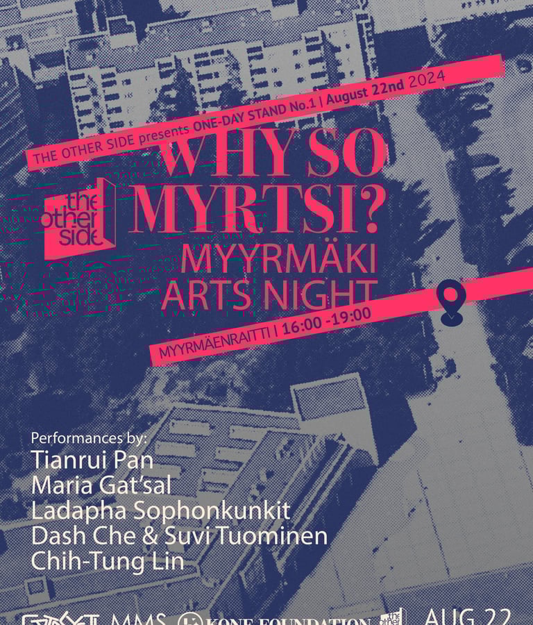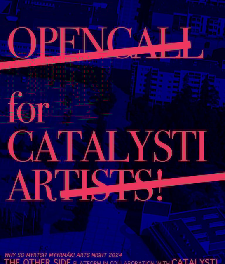 THE OTHER SIDE -performanssitaidealusta avaa yhteistyössä Catalysti RY:n kanssa avoimen haun performanssitaiteilijoille Myyrmäen Taiteiden yöhön 2024, joka juhlistaa Vantaan 50- ja Why So Myrtsin 10-vuotispäivää. Tapahtuma pidetään 22. elokuuta 2024 klo 16-19 Myyrmäessä, Vantaalla. Catalystin jäsenet ovat tervetulleita lähettämään ehdotuksiaan. Performanssit pidetään Myyrmäenraitilla.