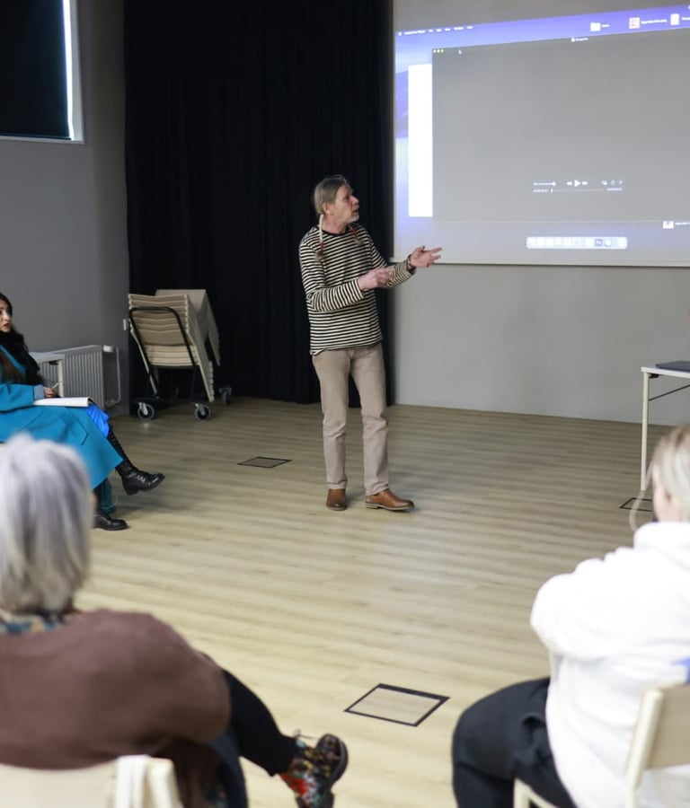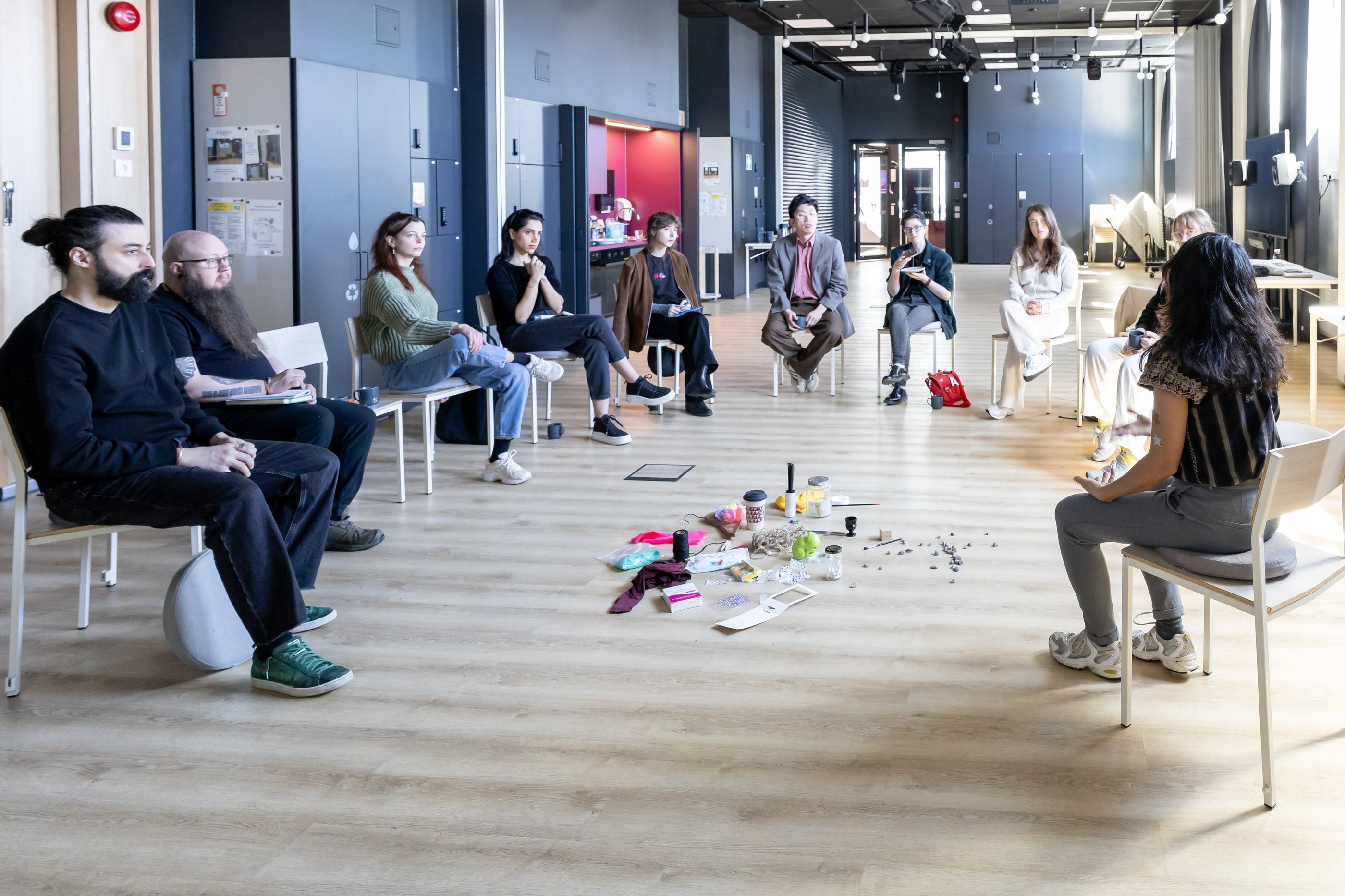 Tässä me olemme, Sidewalk 2025 -projektin viimeisessä työpajassa Kaupunkikulttuurikeskus Mosaiikissa Vantaalla! Mikä mahtava tiimi, miten hieno matka! Viimeisten kuukausien aikana meillä on ollut ilo työskennellä kahdeksan lahjakkaan osallistujan kanssa, joista jokainen toi tilaan omat ainutlaatuiset tarinansa, näkökulmansa ja energiansa. Diana Soria Hernándezin huomaavaisen mentoroinnin ja neljän vierailevan luennoitsijan (Roi Vaara, Leena Kela, Pancho Lopez ja Gustaf Broms) tuella kävimme performanssitaiteen rajoilla — mitä performanssitaide on, mitä se ei ole, ja kuinka se kietoutuu erottamattomasti jokapäiväiseen elämäämme. Kesäkuussa alkoi projektin toinen vaihe, jossa kuvasimme työpajaviikkojen aikana kehitellyt performanssit. Sessiot olivat voimakkaita, intiimejä ja täynnä oivalluksen hetkiä ja uuden oppimista.