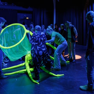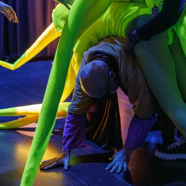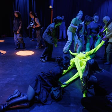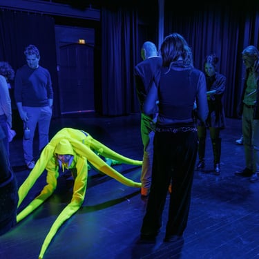 Leik is a queer non-binary Oslo-born and Helsinki-based performance- and visual artist striving for softness, weirdness and openness. Their work is relational, processual and playfully serious, often involving costumes and situations that grow from everyday encounters and vibrate in the meeting between the fantastical and physical reality.