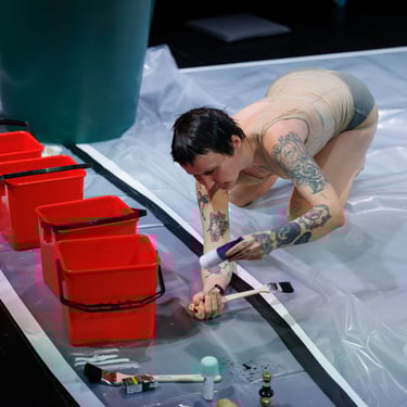 Tonya Fucking Björkbom is a finlandssvensk queer humam, feral beast and bad performance artist. They explore themes like intimacy and disobidience with a playfull and comical flare. While also finding alternative ways to connect with the audience through various mediums like social media posts and flyers. To them art is a way to brake norms and a deep desire for something better and bigger. It's a way to be free in a world that isn't free.
